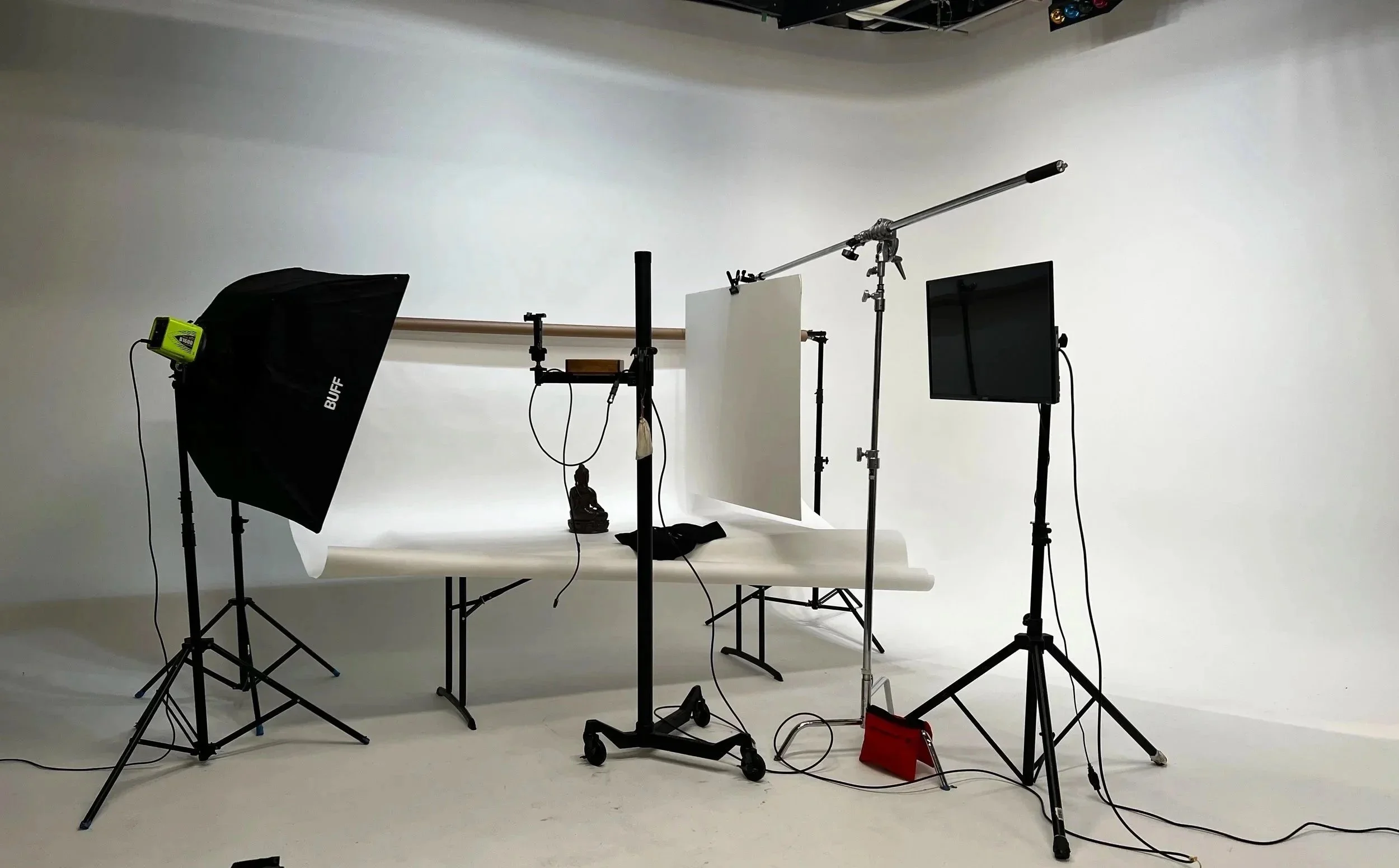 The infinity cyc provides a seamless background for studio photo shoots. It's perfect for fashion, music videos, dance, portraits, broadcasts, and business videos.